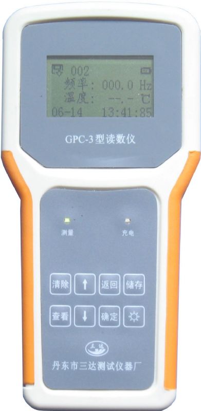 GPC-3型手持式读数仪用于振弦式传感器信号的测量。可显示频率、模数、温度值;可存储1000组测量数据;可与电脑实现数据通讯,并通过EXCEL平台进行数据编辑和处理。功能强大、使用方便、可靠耐用。